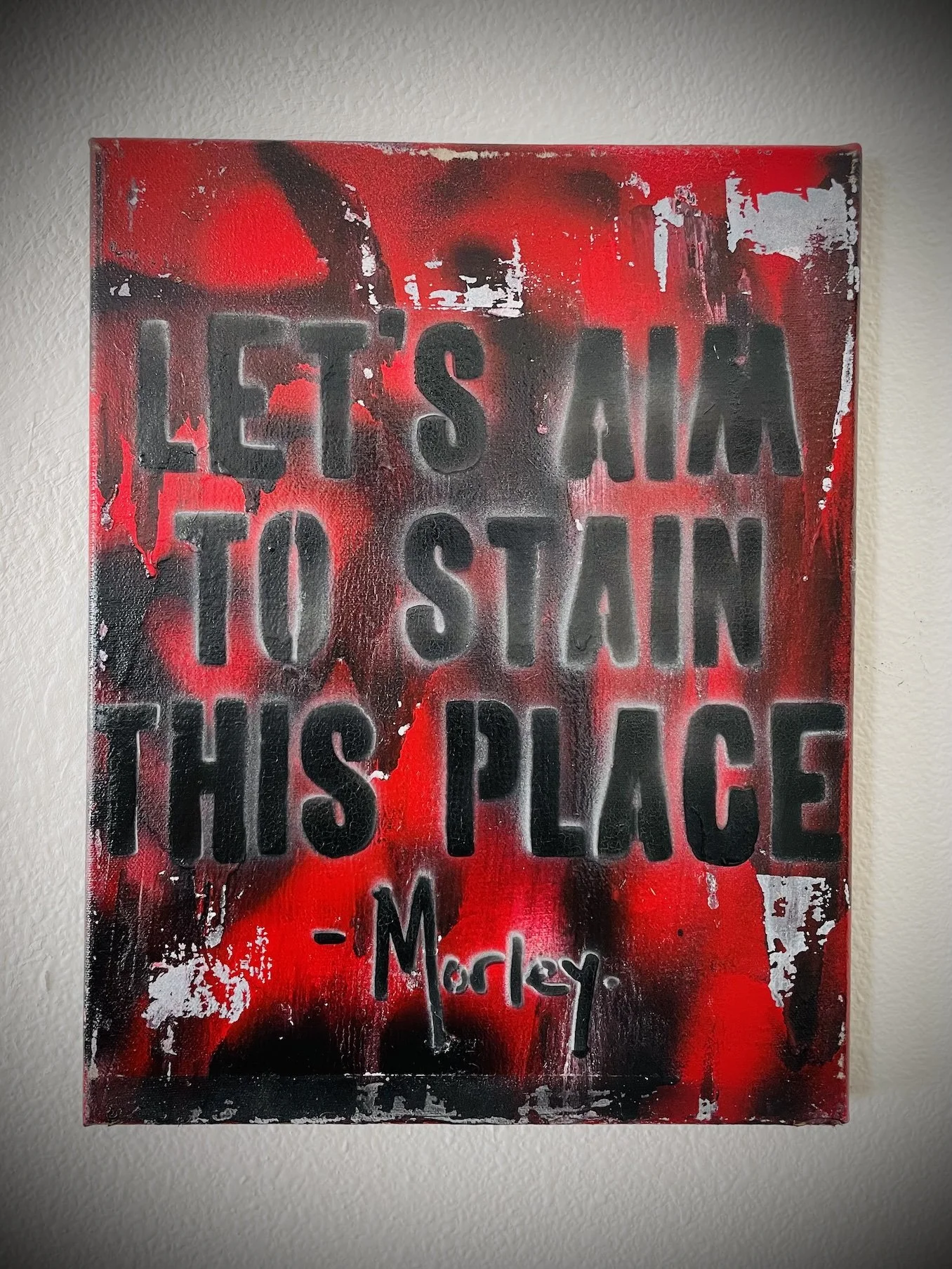 BACK FROM THE SHED: THE SHED STRIKES BACK › Aim To Stain - 11x14 Image 1 of 1 Aim To Stain - 11x14 $75.00 sold out This is a hand painted canvas that is 11x14 inches and half an inch thick. It was painted with acrylic paint and aerosol. Sold Out Added! This is a hand painted canvas that is 11x14 inches and half an inch thick. It was painted with acrylic paint and aerosol.